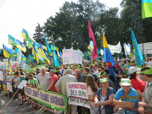 Сегодня возле Верховной Рады Украины собралось более двух тысяч людей с требованием не допустить продажи земли Украины. Как известно, земля – последнее богатство нашего народа, которое официально еще не пустили под распродажу. Но это категорическое требование Международного валютного фонда, стратегия, так называемых, рыночных реформ. Люди начинают понимать колониальную сущность еврореформ и выходят на акции протеста.