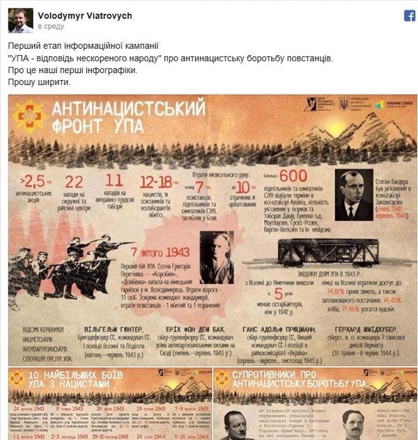 Ведомство Вятровича подготовило за госсчет серию «веселых картинок» - инфографики для массовогго тиражирования, призванной «доказать» антинацистский характер деятельности УПА.