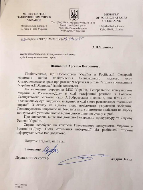 Сегодня Яценюк опубликовал ходатайство Следственного комитета РФ о его аресте.