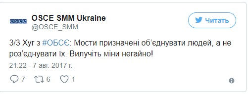 "Мосты предназначены объединять людей, а не разъединять их. Извлеките мины немедленно!", – резюмировали в ОБСЕ.