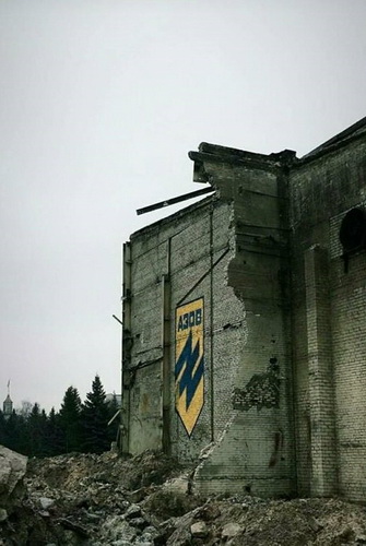 Он опубликовал фото разрушенного цеха: от здания осталась лишь стена с изображением шеврона "Азова".